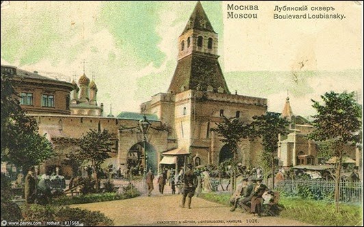 Еще до войны часть зданий снесли, после войны была идея построить здесь восьмую высотку, но, в результате, построили гостиницу «Россия», сейчас здесь уже почти 10 лет пустырь, на котором обещают разбить парк «Россия», только работ пока толком никаких не ведут. На фото выше дом Товарищества Никольской мануфактуры Викулы Морозова с сыновьями, стоявший некогда на Варварке.